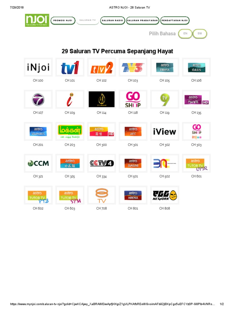 It operates in malaysia and brunei has operations at the all asia broadcast centre located in bukit jalil, kuala lumpur. .astro njoi (oktober 2019) 100 njoi 101 tv1 102 tv2 103 tv3 105 astro prima 106. Enjoy free access to 29 tv channels & 20 radio channels forever no contract. Rm53 per month & add another rm10 for hd channels (for astro supersport channels only). The package items for njoi includes: