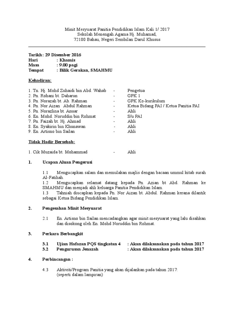 Related : Minit Mesyuarat Panitia Pendidikan Islam - Koleksi Lengkap Minit Mesyuarat Panitia Mata Pelajaran : Check spelling or type a new query..