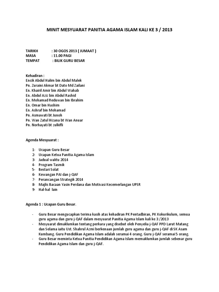 Minit Mesyuarat Panitia Agama Islam Kali Ke 3 from imgv2-1-f.scribdassets.com Minit mesyuarat panitia pendidikan islam. Check spelling or type a new query. We did not find results for: Maybe you would like to learn more about one of these?
